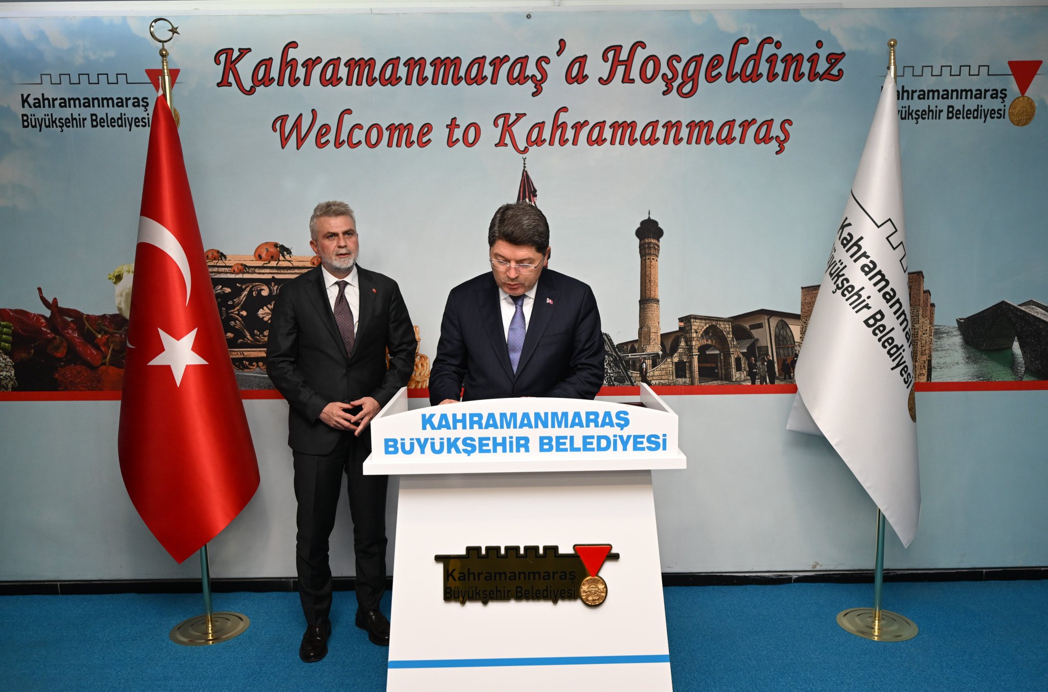 Ziyaretlerine Kahramanmaraş Büyükşehir Belediyesi ile başlayan Bakan Tunç, burada Büyükşehir Belediye Başkanı Fırat Görgel, Kahramanmaraş Valisi Mükerrem Ünlüer, milletvekilleri ve protokol üyeleriyle bir araya geldi.