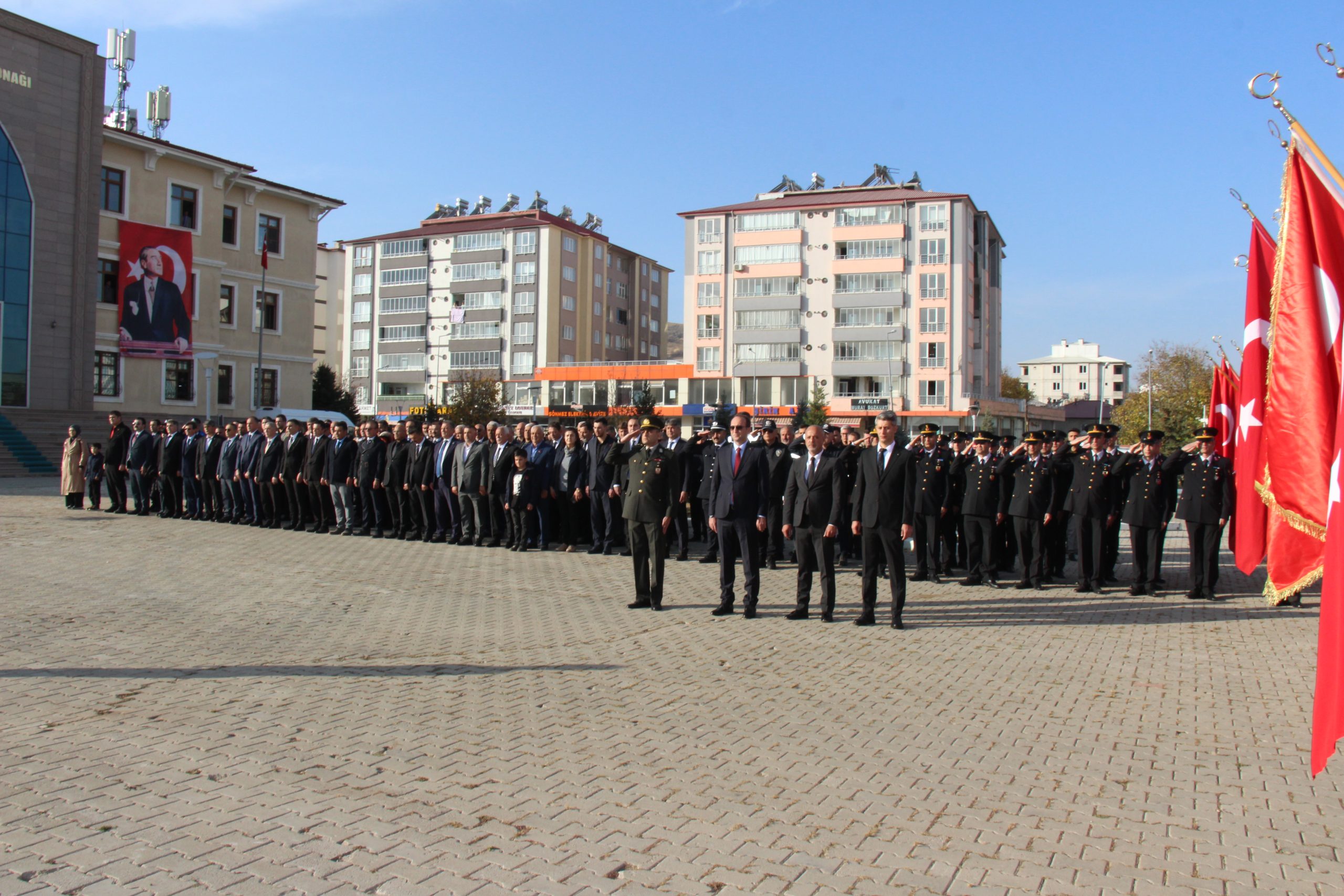 Saat 09.05’te sirenlerin çalmasıyla birlikte ilçede hayat adeta durdu. Vatandaşlar, kamu kurumları ve araçlar 2 dakikalık saygı duruşunda bulunarak Büyük Önder Atatürk’ü andı. Ardından İstiklal Marşı okunarak tören sona erdi.