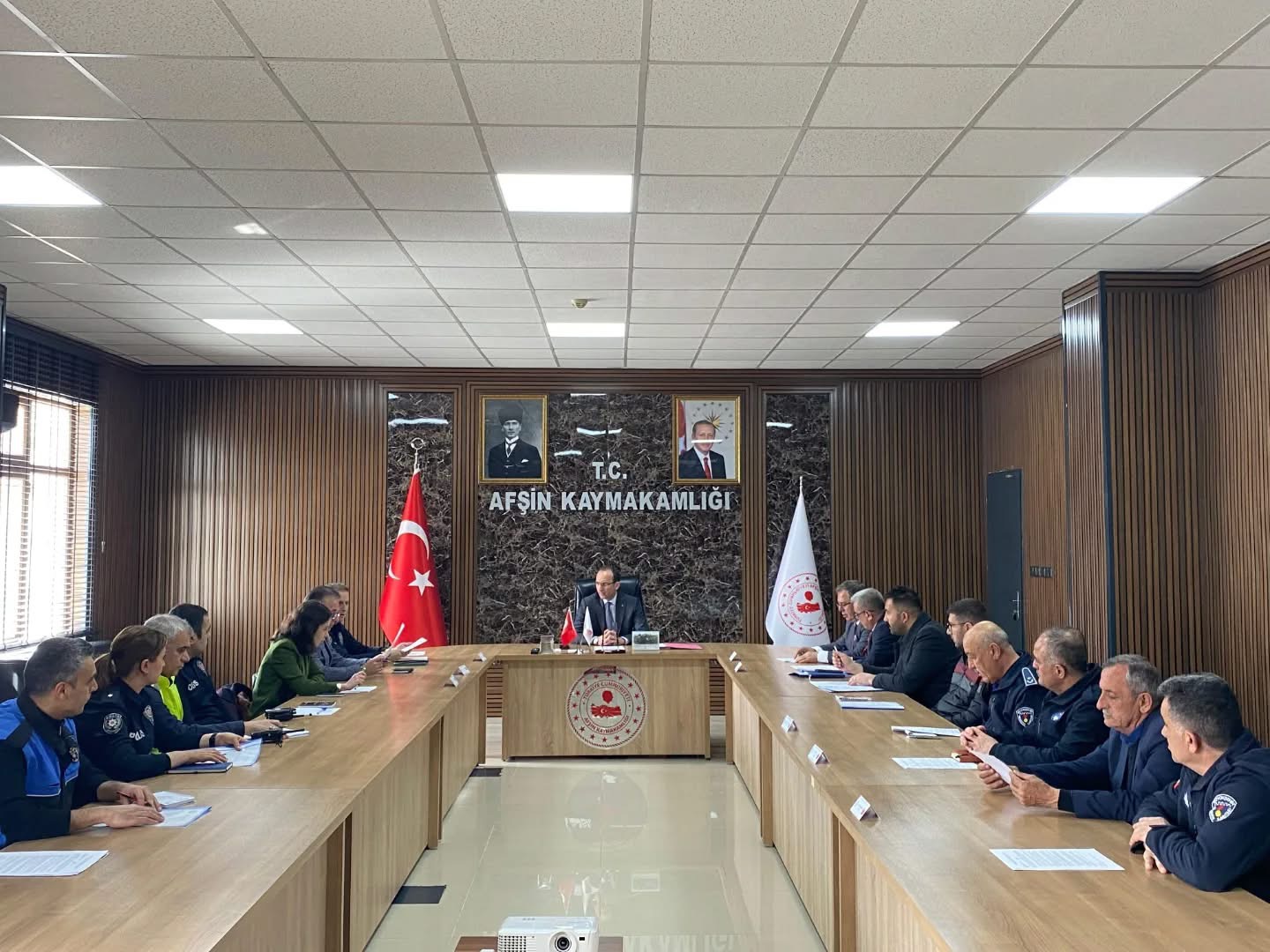 Afşin’de, toplum huzur ve güvenliğinin artırılmasına yönelik önemli bir toplantı gerçekleştirildi. İlçe Kaymakamı Muammer Sarıdoğan başkanlığında düzenlenen “Toplum Destekli Polislik Hizmetleri İlçe Güvenlik Danışma Kurulu Toplantısı”, ilgili kurum amirleri ve personelin geniş katılımıyla yapıldı.