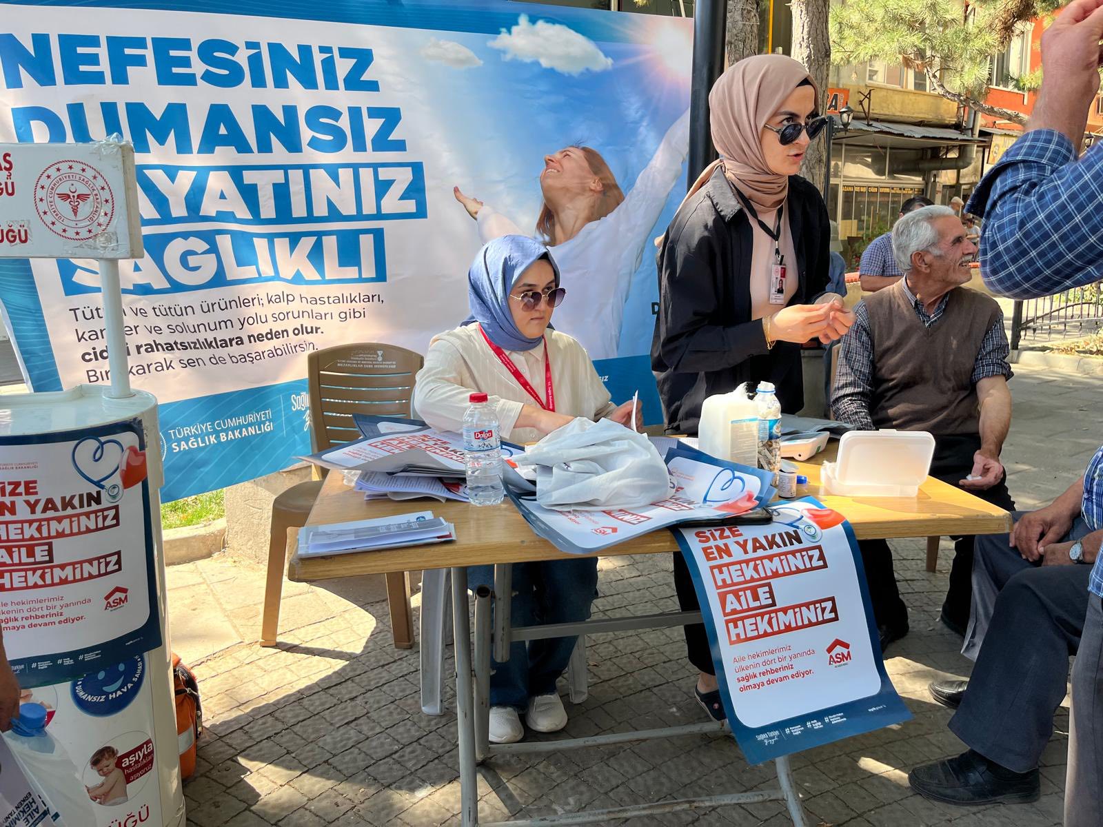 Etkinlik kapsamında sağlık personelleri tarafından vatandaşların tansiyon ve kan şekeri ölçümleri yapıldı. Ölçüm sonuçlarına göre bireyler, gerektiğinde en yakın aile hekimlerine yönlendirildi. Aynı zamanda vatandaşlarla birebir yapılan görüşmelerde, “Aile hekiminizi tanıyor musunuz?” ve “Aile hekiminize kolay erişebiliyor musunuz?” gibi soruların yer aldığı mini anketler düzenlenerek, sağlık sistemine dair farkındalık artırıldı ve geri bildirimler toplandı.
