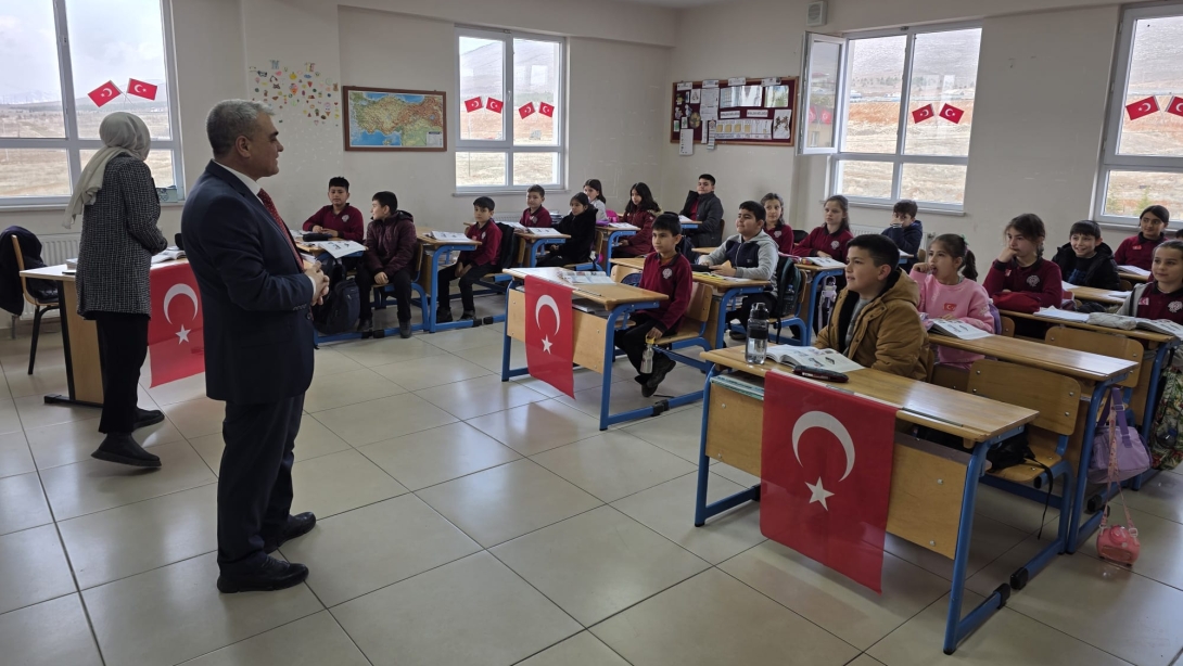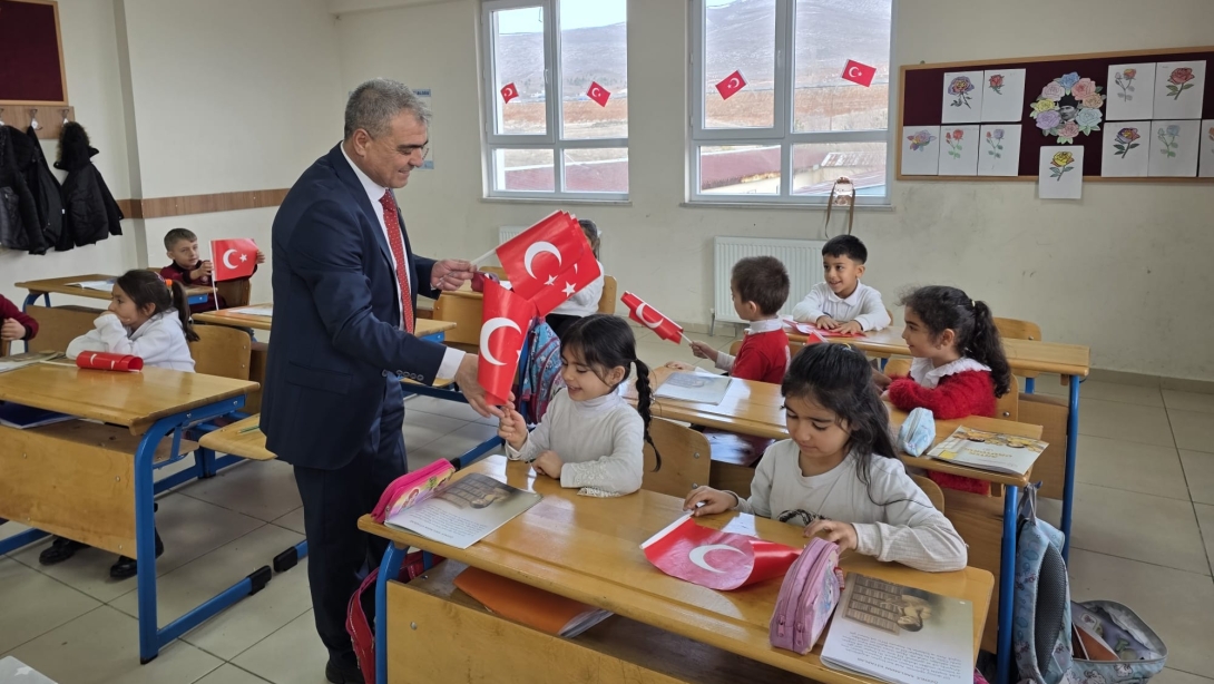 Gerçekleştirilen ziyaretlerde öğrencilerle bir araya gelen İlçe Milli Eğitim Müdürü Özdemir, milli ve manevi değerlerin eğitim sürecindeki yeri, bağımsızlığın simgesi olan şanlı Türk bayrağının anlamı ve vatan sevgisinin gelecek nesillere aktarılmasının önemi üzerine sohbet etti.