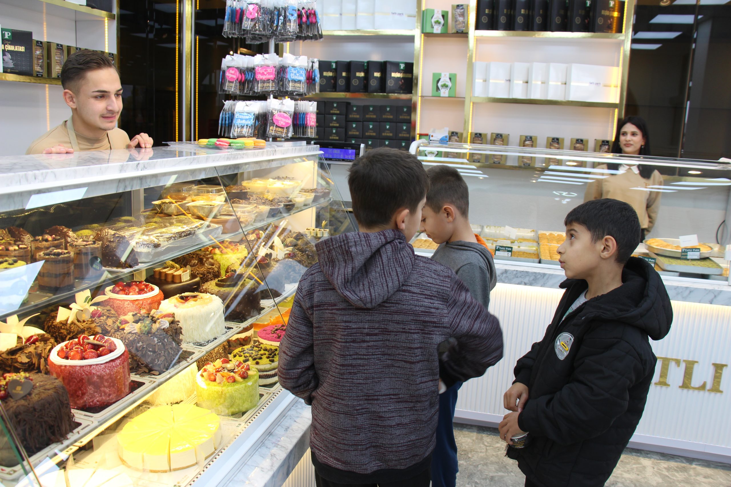 22 çeşit şerbetli tatlımız, sütlü tatlılarımız, 20’den fazla kurabiye çeşidimiz, waffle, yaş pasta ve dondurma çeşitlerimiz mevcut. Ürünlerimizin tamamı burada hazırlanıyor, dondurulmuş malzeme kullanılmıyor. Ayrıca sıcak-soğuk içeceklerin yanı sıra kahvaltı, fast food ve ana yemek menülerimiz de bulunuyor.”
